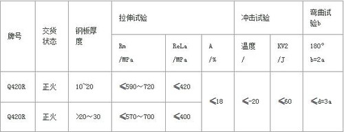 Q420R鋼板允許沖擊溫度零下-20°,一切根據客戶要求訂軋。可按照交貨控軋或者正火狀態交貨。