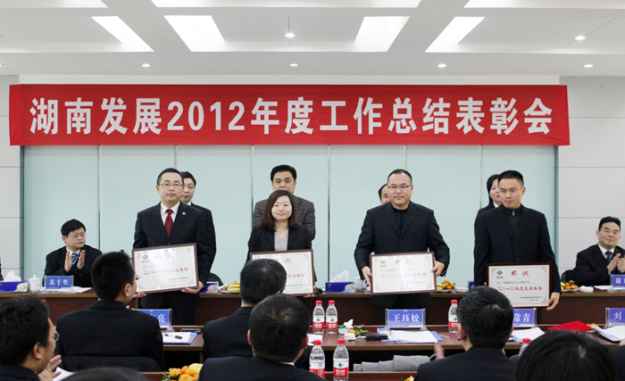 總裁劉健總結了2012年度公司工作完成情況、取得的經驗和存在的問題,報告了2013年度主要工作思路。副總裁兼財務總監張潔宣讀了《關于表彰2012年度先進集體和優秀個人的決定》,公司領導對獲獎集體和個人進行了頒獎。
