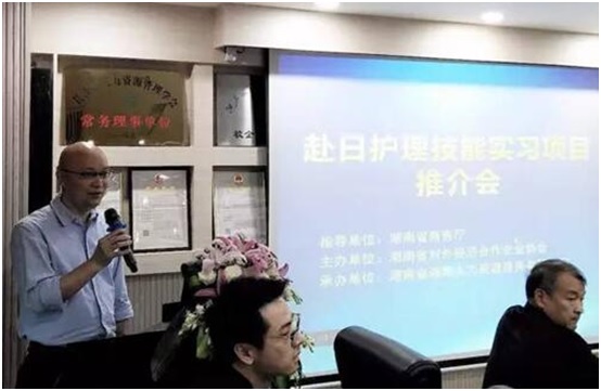 2017年4月25日下午,由湖南省商務(wù)廳指導(dǎo)、湖南省對(duì)外經(jīng)濟(jì)合作協(xié)會(huì)主辦、湖南省湘輝人力資源服務(wù)有限公司承辦的“赴日護(hù)理技能實(shí)習(xí)項(xiàng)目推介會(huì)”在長沙舉行。國家衛(wèi)計(jì)委能力建設(shè)和繼續(xù)教育中心社會(huì)合作部主任王永進(jìn)、湖南省商務(wù)廳對(duì)外合作處長彭爭、天心區(qū)副區(qū)長許波、日本醫(yī)療看護(hù)合作社理事長栗原幸太郎、湖南發(fā)展集團(tuán)股份有限公司副總裁兼湖南發(fā)展僑亞養(yǎng)老產(chǎn)業(yè)有限公司董事長張建湘等出席了會(huì)議。
